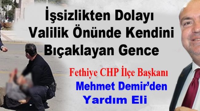 Muğla’da Valilik binası önünde iş istediğini ve borcu olduğunu söyleyerek, "Ben şerefsiz değilim. İşim yok çocuğumun yüzüne bakamıyorum. Buraya sesimi duyurmaya geldim" diyerek kendini bıçaklayan İhsan Şenocak'a yardım eli CHP'den geldi.